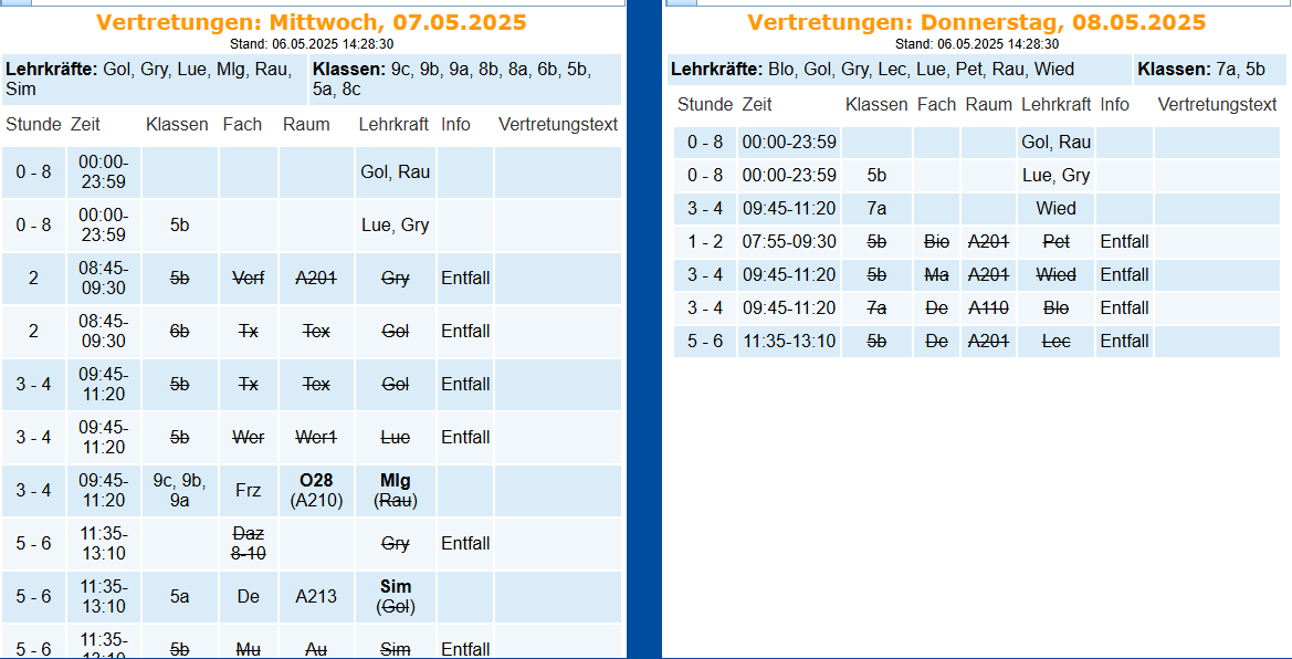 WebUntis bietet Schülern und Eltern die Möglichkeit jederzeit die aktuellen Unterrichtsvertretungen und Schulinfos einzusehen.