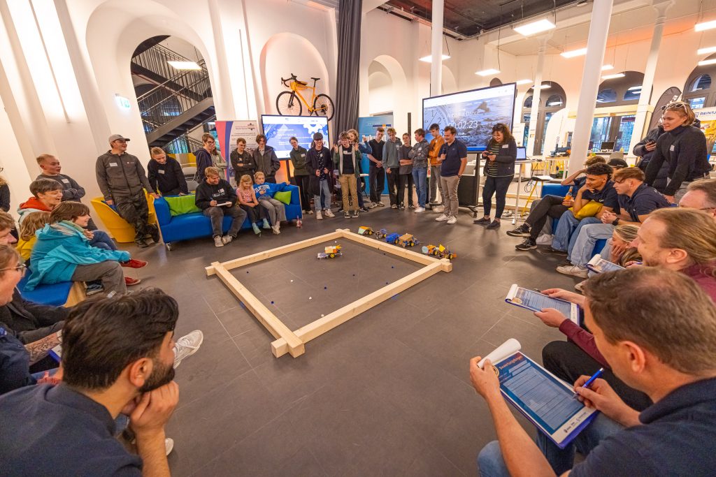 Die Aufgabe nach Abschluss der Konstruktionsphase: Innerhalb von drei Minuten sollten die Roboter möglichst viele 3D-gedruckte Ratten einfangen, dabei blinken und Töne von sich