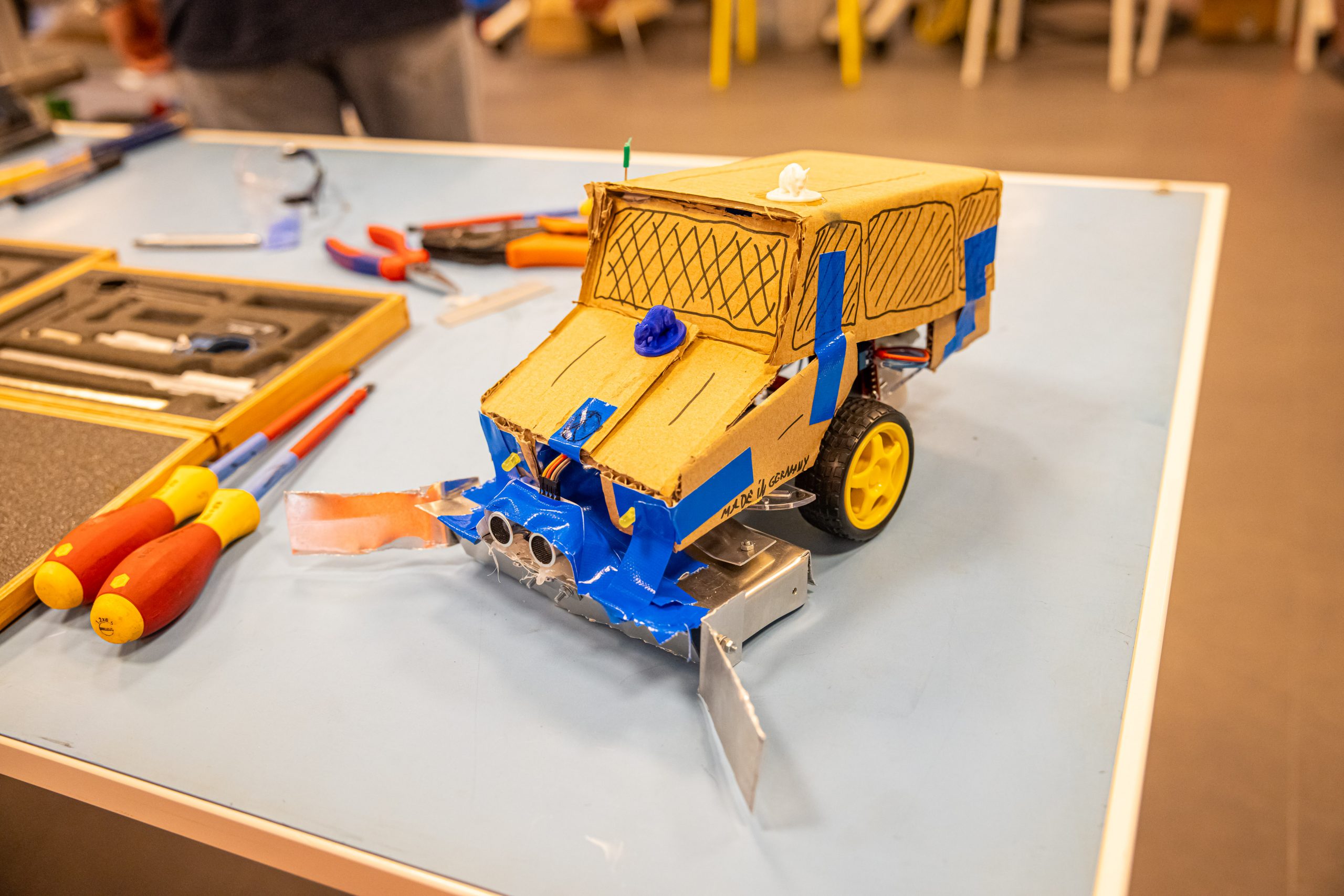 Die Aufgabe nach Abschluss der Konstruktionsphase: Innerhalb von drei Minuten sollten die Roboter möglichst viele 3D-gedruckte Ratten einfangen, dabei blinken und Töne von sich
